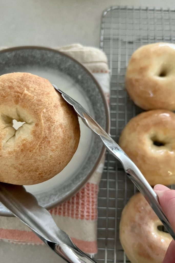 - For the glaze, use tongs to dip one side of the donut into the glaze and then allow them to cool on a wire rack.