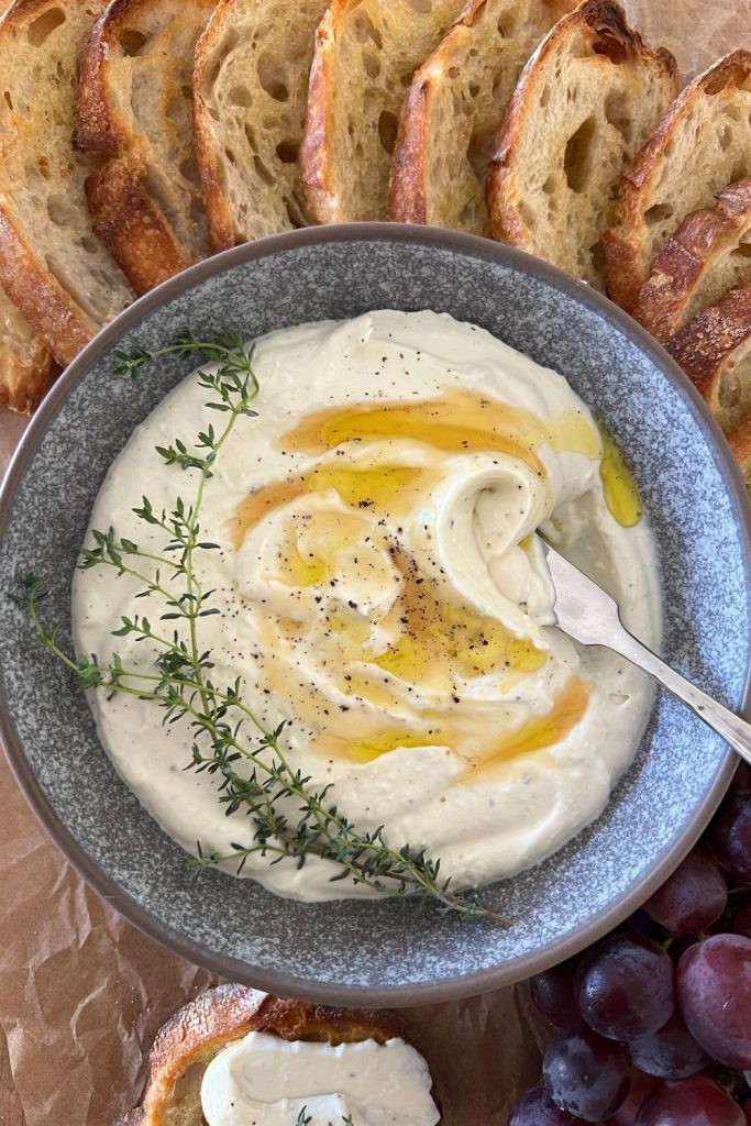 Sourdough crostini can bring an instant artisanal feel to your next platter or board. Slice them super thin for more of a cracker feel, or thicker for a heartier version. I love using leftover sourdough baguettes or French Bread to make these sourdough crostini. Serve with this delicious whipped ricotta dip.