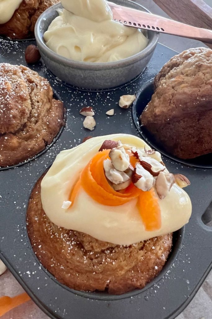 Carrot Cake Sourdough Muffins [with cream cheese frosting]