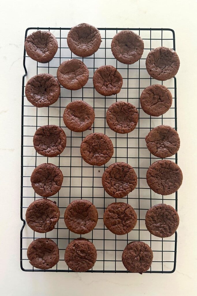 Allow the bites to cool in the pan for around 10 minutes before you try to remove them, as they will fall apart. As the brownie bites cool, the tops should become crackly and the edges will be a little chewy too. Brownie perfection!