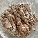 - Weigh out your sourdough starter and then add the water mixture from step 1 into a large ceramic or glass bowl. Mix the water and starter together briefly. Then add your flour and salt and mix together with the end of a wooden spoon. The dough will be fairly shaggy and only just brought together.Cover your bowl with cling film or a damp tea towel and let it sit for around 1 hour. It's ok if it's a little longer.