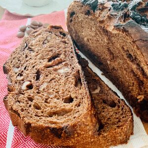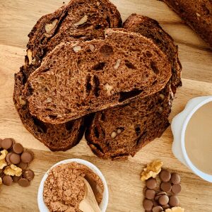 Chocolate and walnut Sourdough bread can be served in so many different ways. It's perfect served with your favorite butter, honey or even a decadent caramel or chocolate spread. You might also like to use chocolate sourdough as the basis for a bread and butter pudding or even a decadent french toast. It would even be at home on a grazing plate or cheese platter.