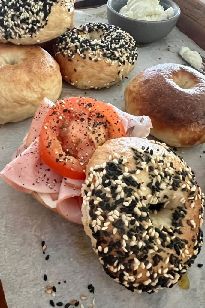 Sourdough bagels are different from other types of rolls because they are boiled in water before being baked in the oven.
