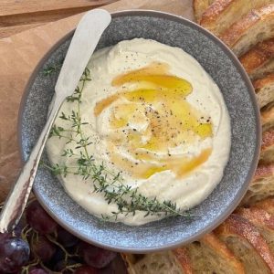 This whipped ricotta dip recipe is the perfect blend of creamy, sweet, and savory. Infused with aromatic garlic, fresh herbs and sweetened with a drizzle of honey, this easy-to-make dip is a sure crowd pleaser and the perfect thing to spread on fresh sourdough bread!