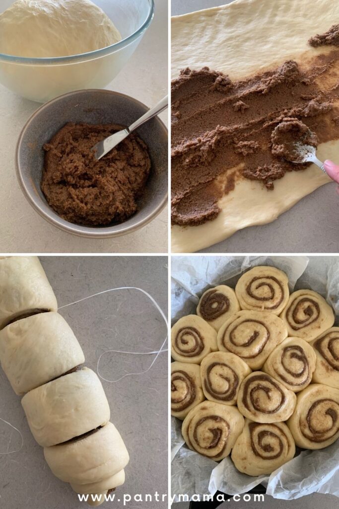 - Use dental floss to cut the rolls. Seriously! It works! Use a ruler/dough scraper to measure where you want to cut each of the rolls and then pop the dental floss under the log and use it to cut through each roll for perfect cuts every single time! It will stop you squashing the delicate rolls by trying to cut them with a knife.