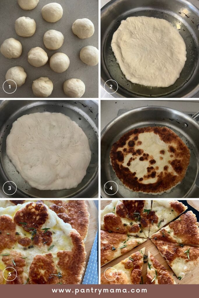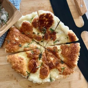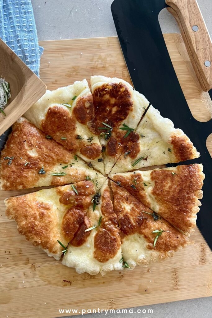 - Remove your fried sourdough pizza dough from the pan and sprinkle with salt and herbs of your choice before cutting and enjoying!
