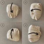 The diagram below shows you how to bring the edges of the dough into the centre before flipping it over to tension it into a tight, round ball.