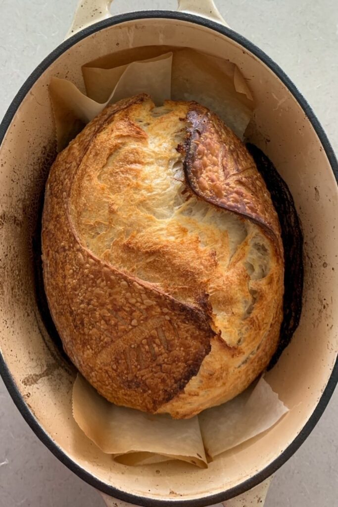 A Dutch Oven is essential to achieving a beautiful blistered sourdough crust.