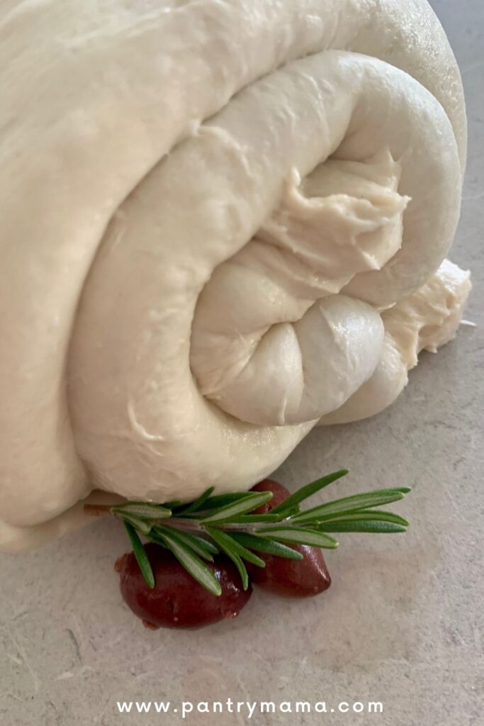 For example, this Sourdough Olive Loaf uses lamination to incorporate the olives.