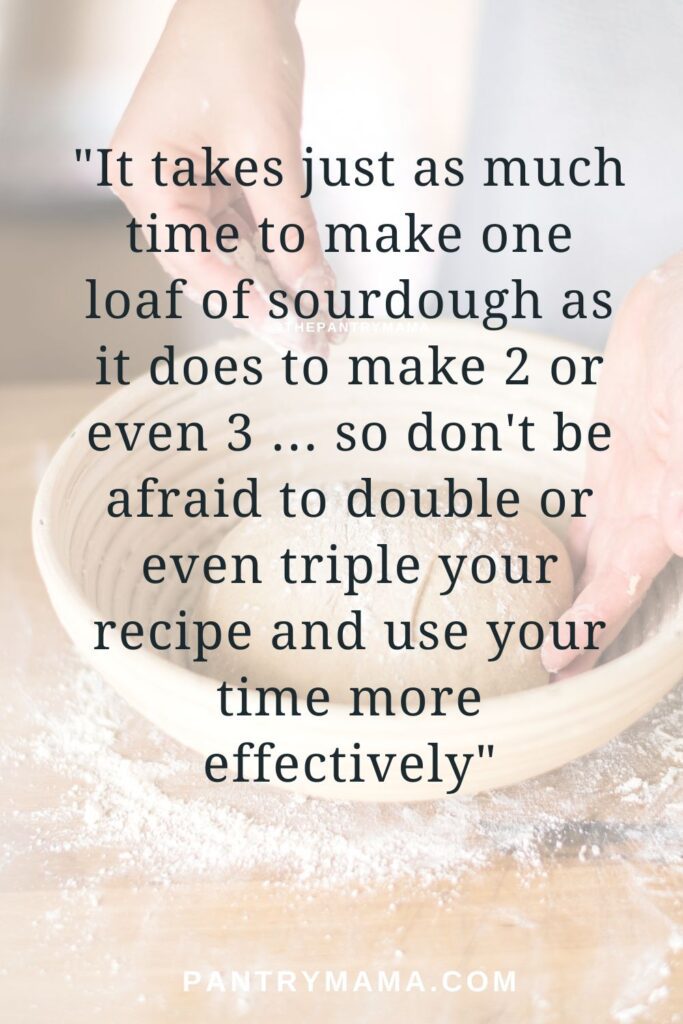 Making more than one loaf of sourdough bread at a time not only saves time, it can also save you money! Since it takes the same amount of time and energy to make two loaves, as it does to make one, it's a great habit to get into to ensure you always have fresh sourdough bread on hand.