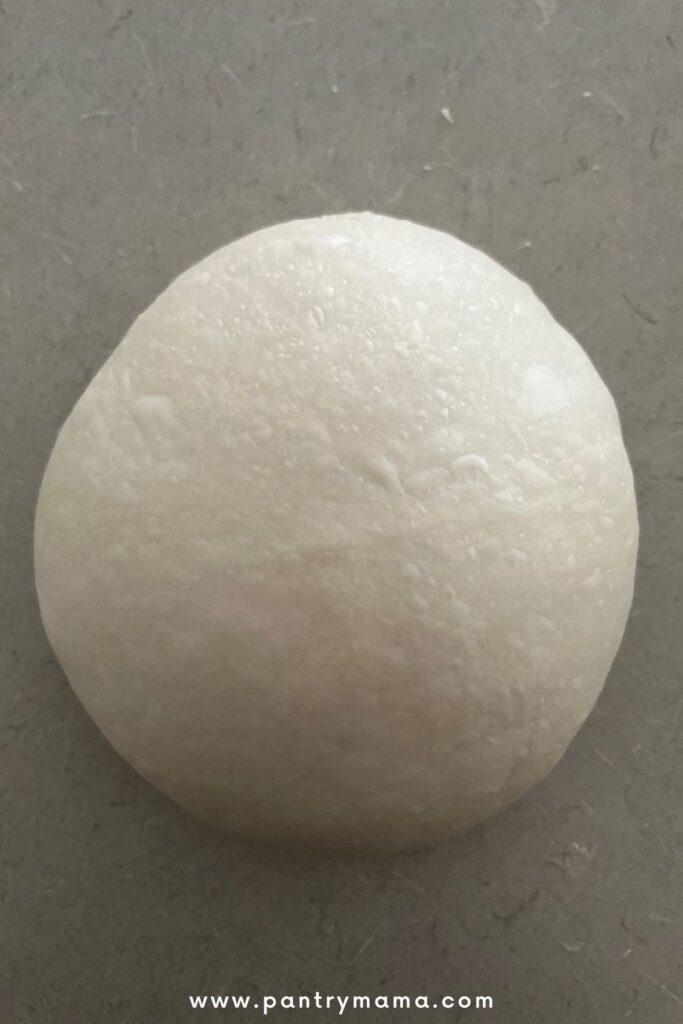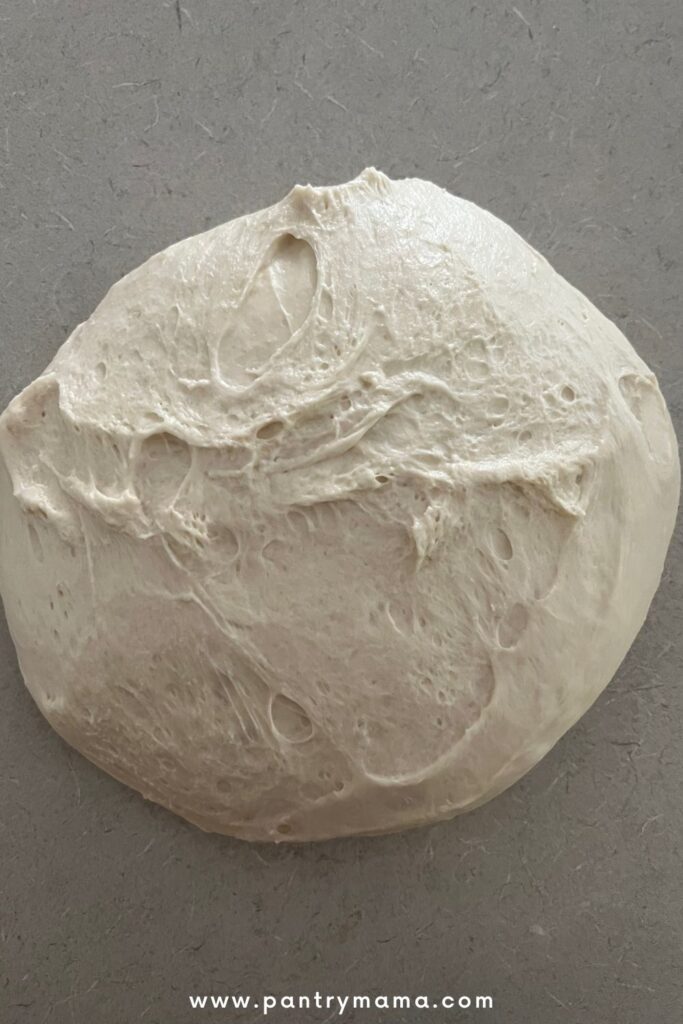 You'll notice that the dough is fully hydrated after soaking all the water up. It will be fairly sticky but as you bring it into a ball, it will become smoother and shinier.