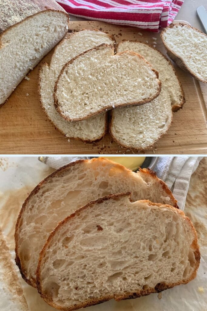 The flavor and texture of pane di casa bread is different to traditional sourdough because of the different leaving agents.