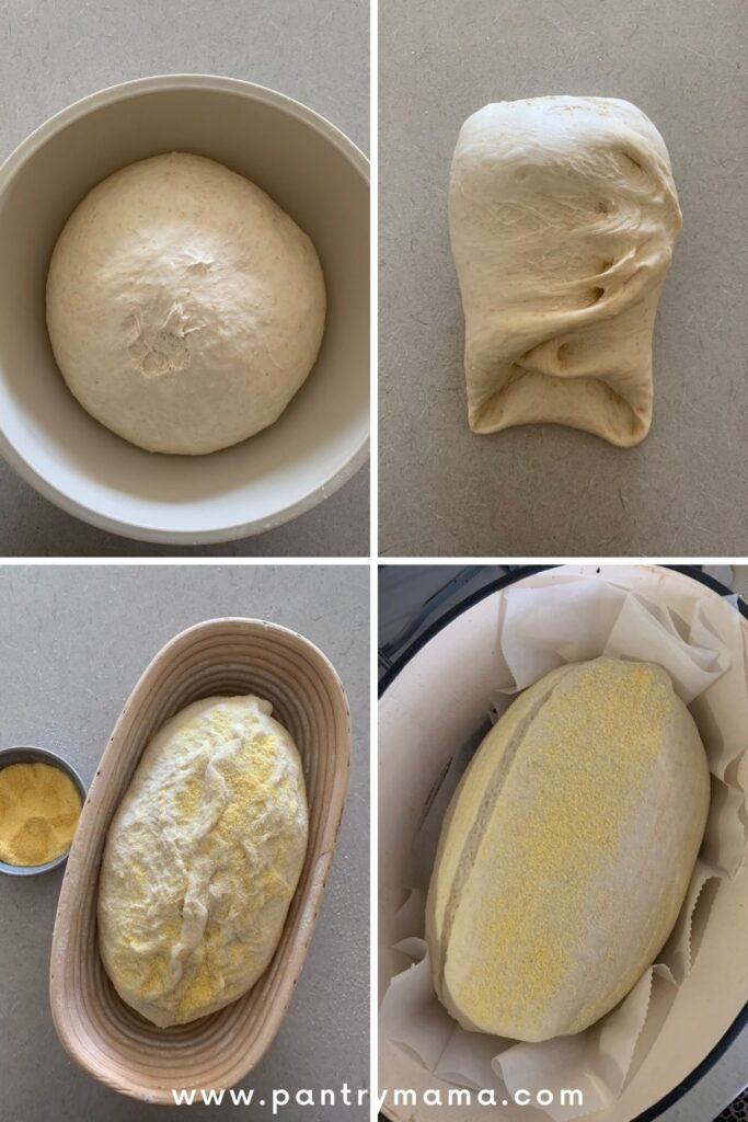 This bread is super easy to shape. It is a lot easier than traditional sourdough bread as it is a stiffer dough.
