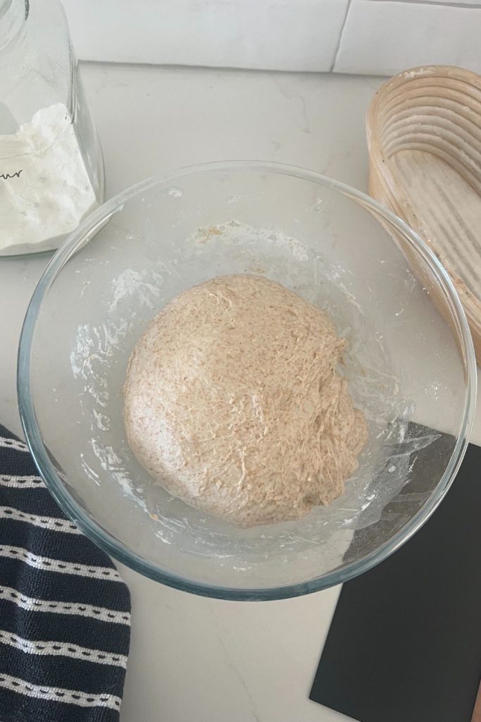 Once the bread dough has formed into a smooth ball, pop the plastic wrap back on.
