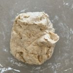 - Add the flour and salt to the liquid and mix through to form a shaggy dough (it might seem dry but just give it time).