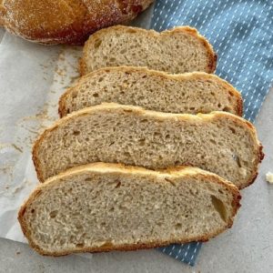 - Use semolina or corn meal to dust your banneton rather than rice flour or all purpose flour. I find that semolina and corn meal give a much nicer texture to the cooked bread.