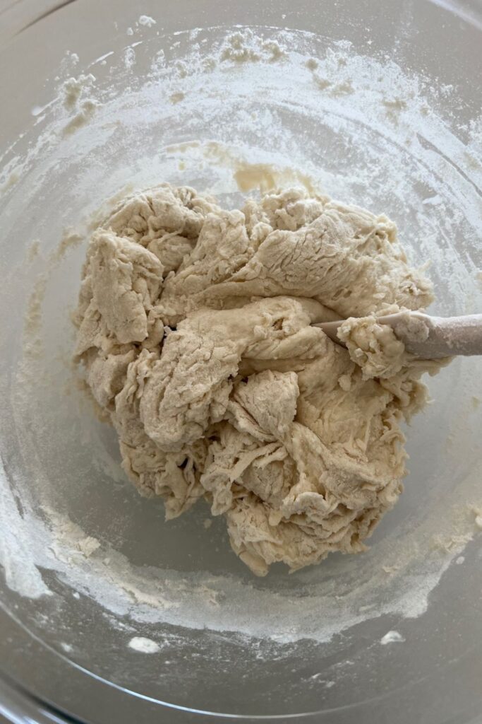 - You'll notice that the dough is fully hydrated after soaking all the water up. It will be fairly sticky but as you bring it into a ball, it will become smoother and shinier.