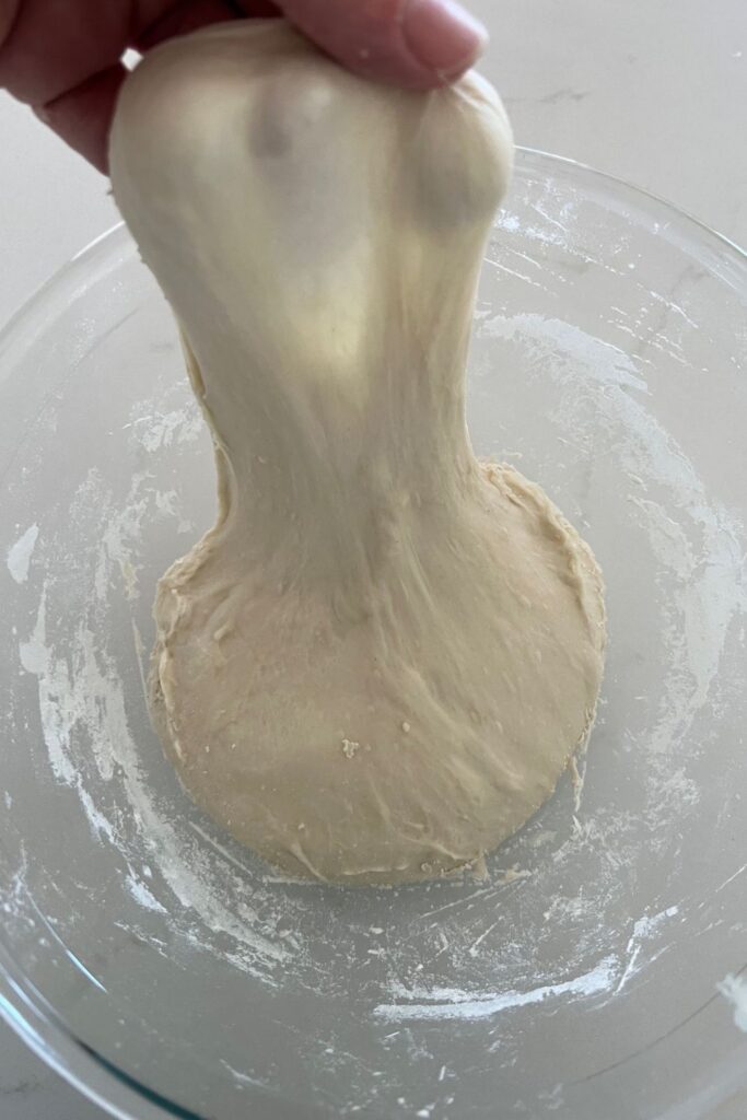 - For each set, stretch the dough up and over itself 4 times. Leave around 15 minutes in between each set. Again you do not have to be exact with time, but you need to do at least 4 sets over 2 hours.
