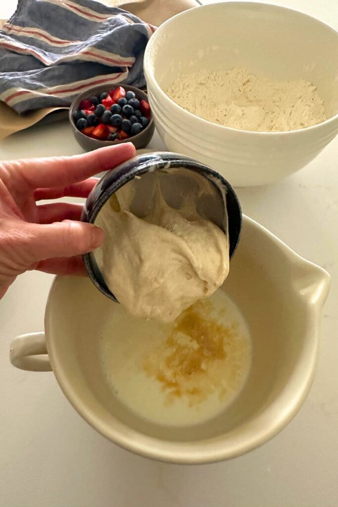 - Mix the buttermilk, heavy cream, vanilla extract and sourdough starter together in a jug.