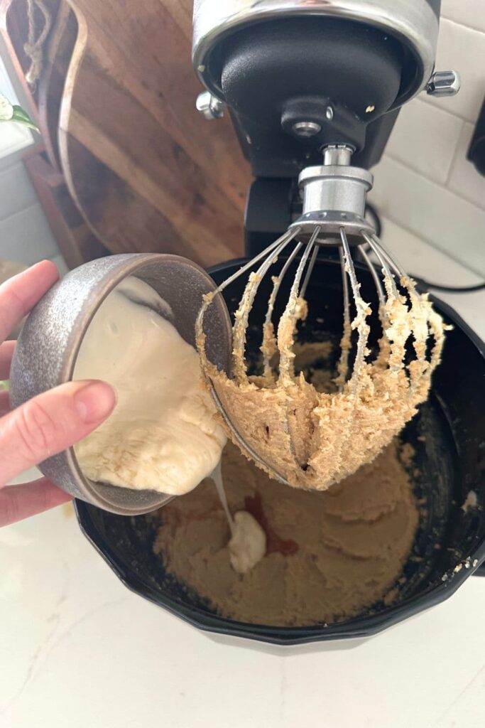 Making the cookie dough for these sourdough biscoff cookies is really easy! I've used a stand mixer, but you certainly don't have to. A bowl and whisk or even electric hand mixer would be just fine.