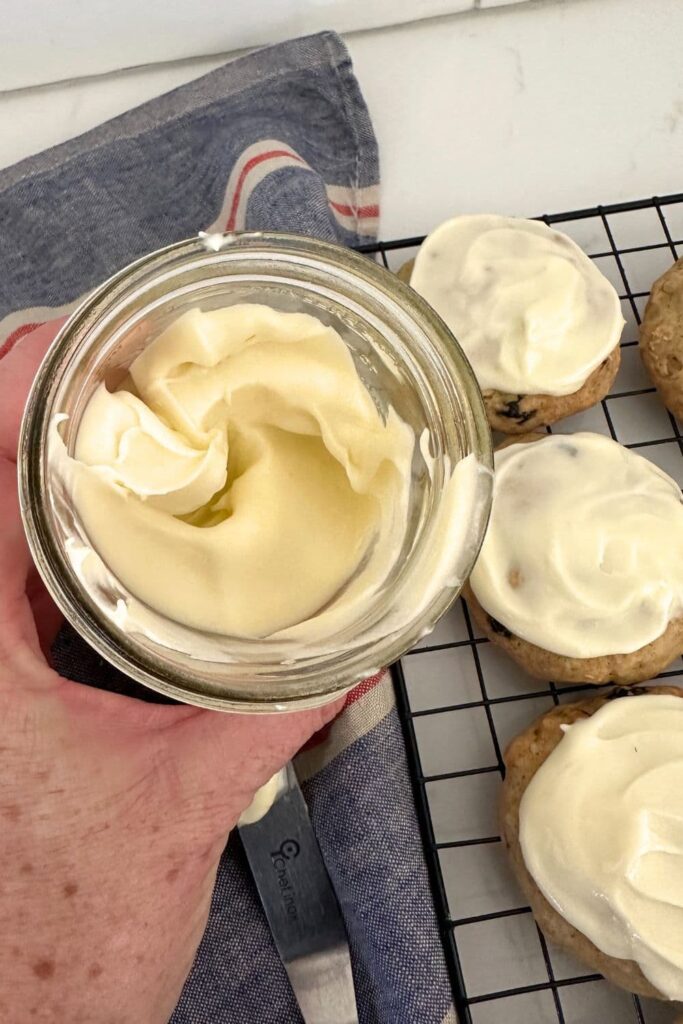 Lemon Cream Cheese Frosting - The lemon cream cheese frosting takes these sourdough cookies to the next level! It's definitely optional, but highly recommended! The cookies themselves contain some lemon zest which pairs really nicely with the lemon frosting. They kind of taste like blueberry cheesecake sourdough cookies!