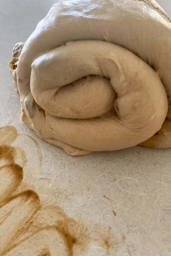 - Stretch and fold the dough to develop gluten while adding in the dates.