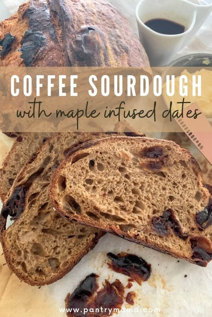 Coffee sourdough bread flavored with espresso and maple infused dates. Sounds good, right?