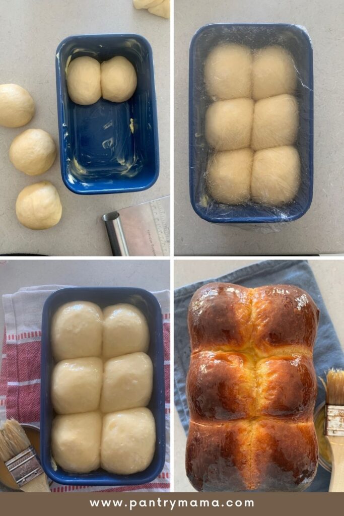 Place the balls into a bread pan. Make sure they are snug and touching each other. As they rise they will form a loaf.