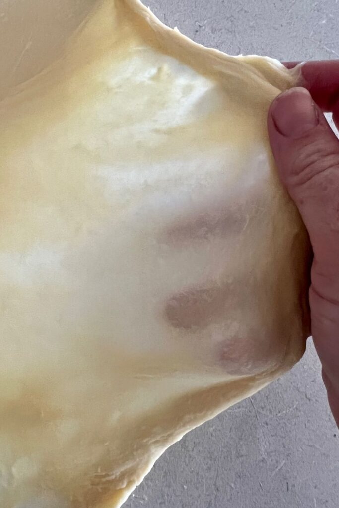 You don't necessarily need a window pane when making sourdough brioche - however achieving this can demonstrate the brioche dough has formed a strong gluten network and is ready for fermentation.