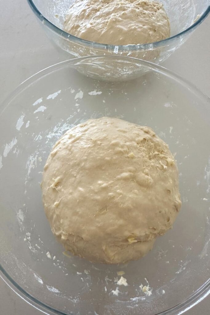 You'll notice that the dough is fully hydrated after soaking all the water up. It will be fairly sticky but as you bring it into a ball, it will become smoother and shinier.