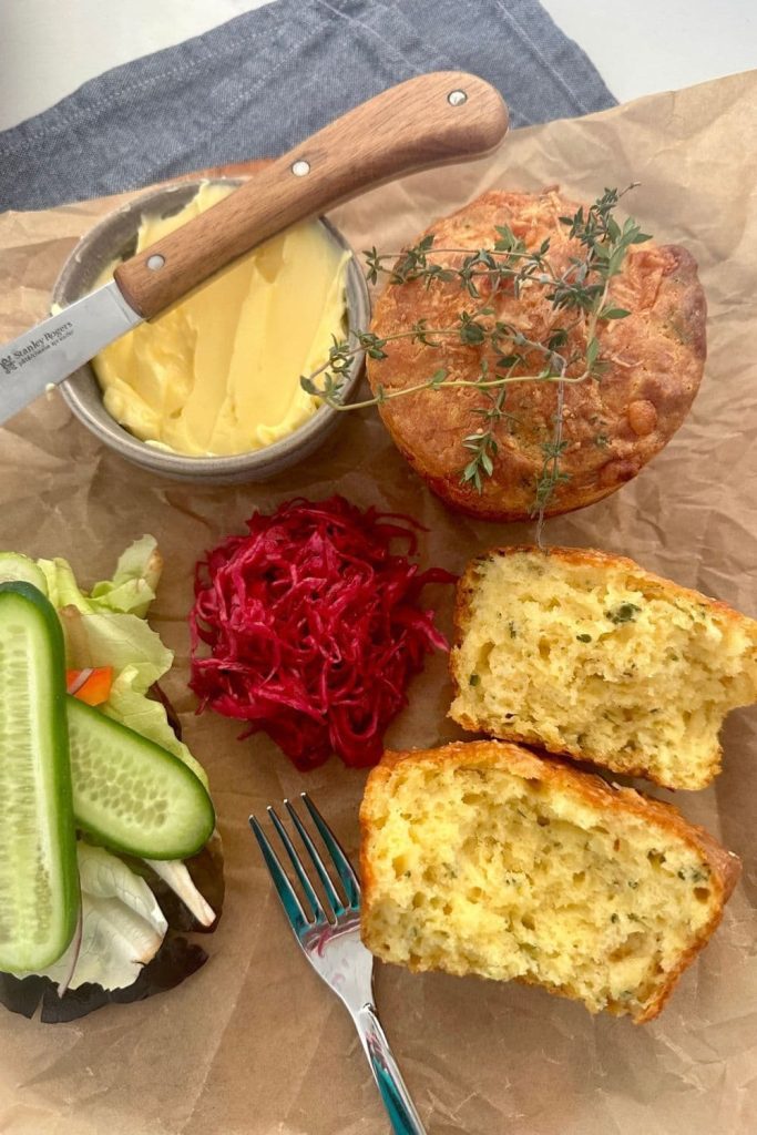 Make Them A Meal - I love using these muffins for a simple summer supper. I add some green salad, butter, pickled red cabbage and anything else I have in the fridge (sometimes jalapeños, sauerkraut, olives etc).