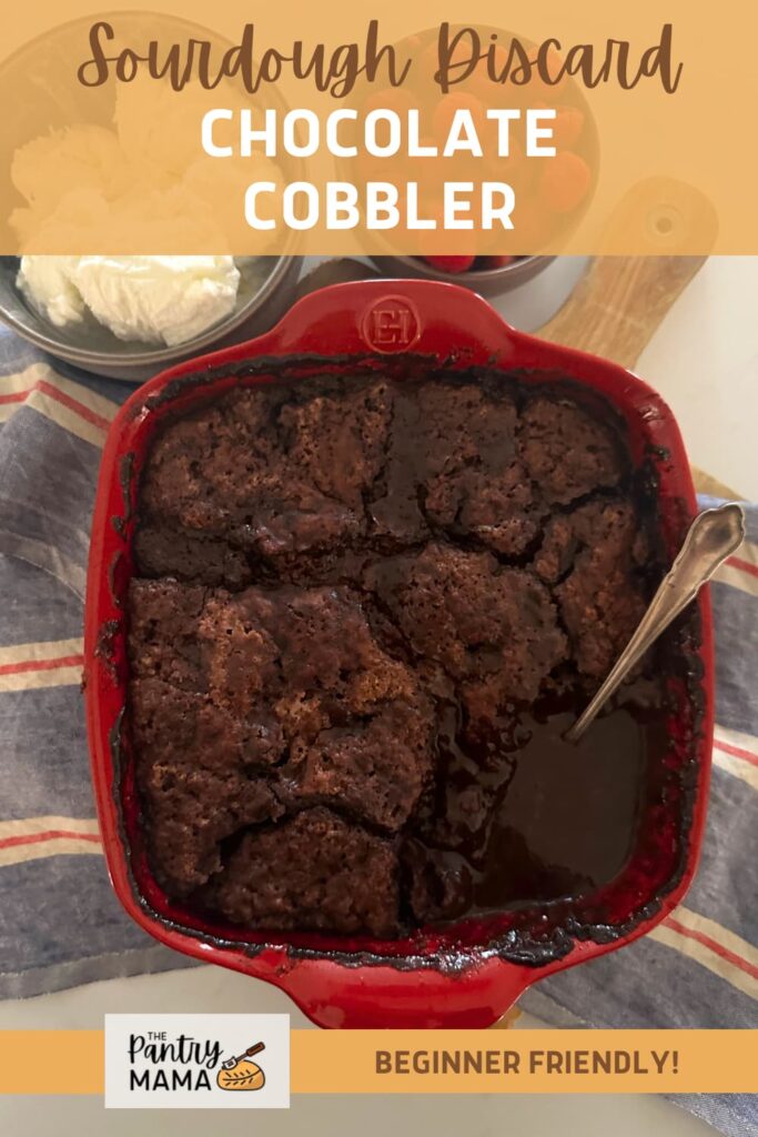 You can bake this sourdough chocolate cobbler ahead of time if you wish. It can be baked, then covered with aluminum foil once cooled and placed into the fridge for up to 3 days. You can then warm it through in a moderate oven once you are ready to serve it.