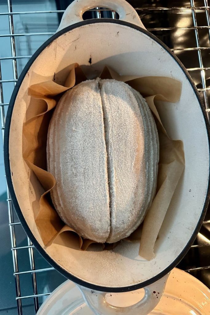 You will need a proofing basket or container to put your dough into. You can find more notes on what to use as a banneton here.