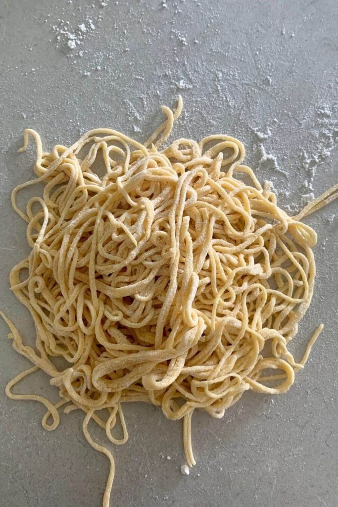 Depending on what everyone wants, we generally will have a nice, easy spaghetti bolognese or pesto made with homemade sourdough pasta. I will make the sauce during the meal prep on Sunday and often the pasta too. I like to make large batches of sourdough pasta and dry it out before freezing it for easy dinners. We also love eating sourdough pasta served with these sourdough meatballs!