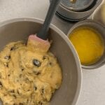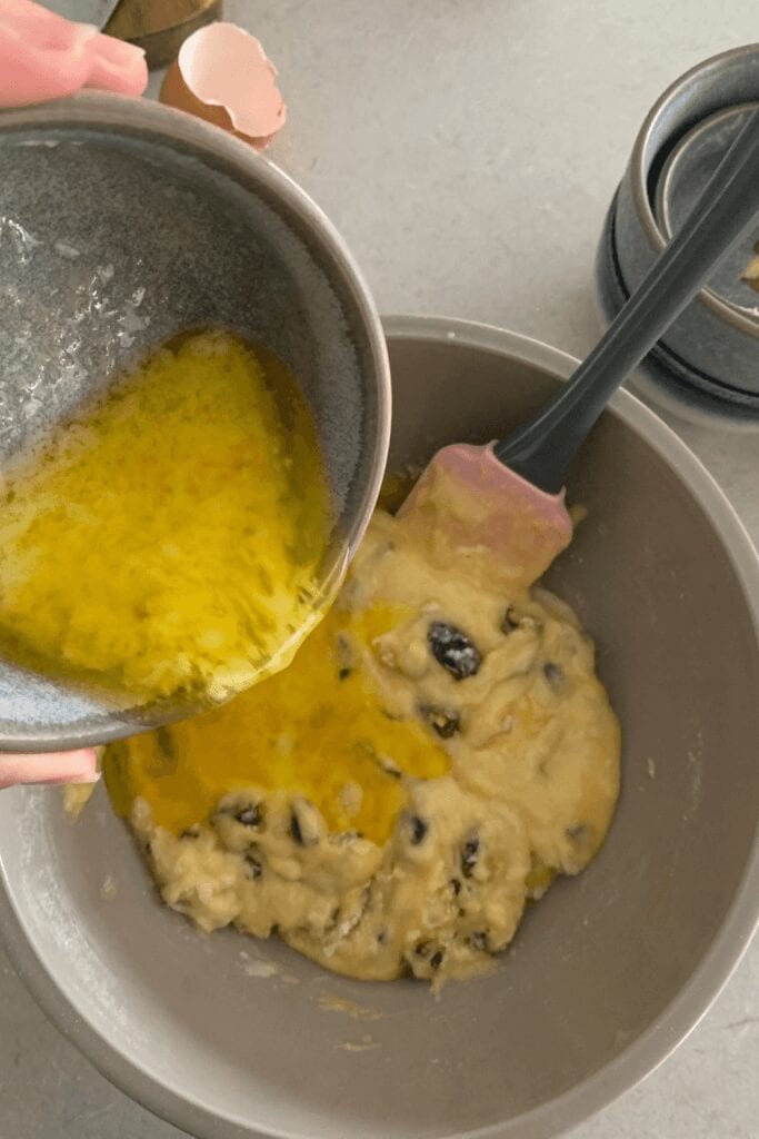 - Add the melted butter and stir into a thick batter.