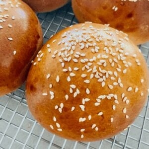 First off, I don’t write reviews for anything, but I am so stoked about how these turned out that I can’t not. I bake most of our family’s bread but I’ve always been disappointed in homemade hamburger buns. Not today! This recipe NAILED it, even according to my husband, and that’s the realest endorsement you’ll ever get. I used 50/50 AP flour and fresh-milled white whole wheat flour, and accidentally used 130g sourdough discard instead of 100g. These were so soft and delicious, the dough was so easy to work with, and it’s so convenient to be able to throw these together in an afternoon for dinner that same night. Thank you for saving our hamburgers from store-bought buns!!!