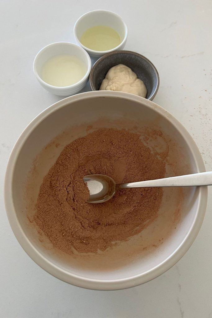 This sourdough microwave mini cake could not be easier to pull together! You don't even need a bowl - you can mix it all in the mug (although if you are making two or more, I do find it easier to mix it in a bowl and then add the cake batter to the mugs before cooking).