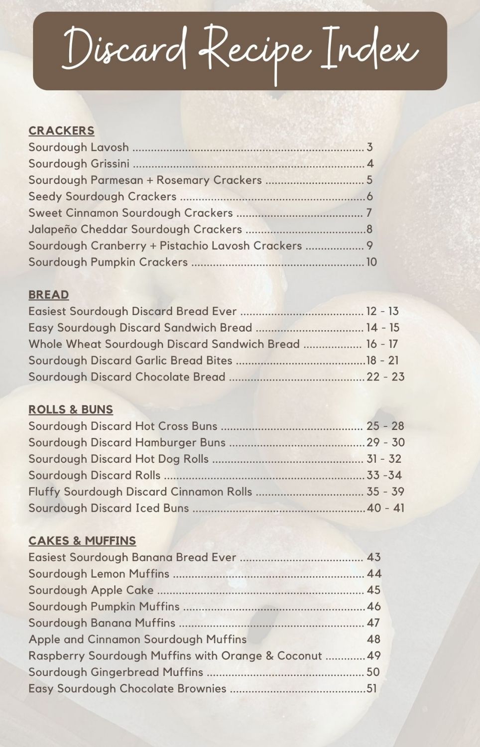 This recipe book contains a collection of 40 tried and tested sourdough discard recipes, including: