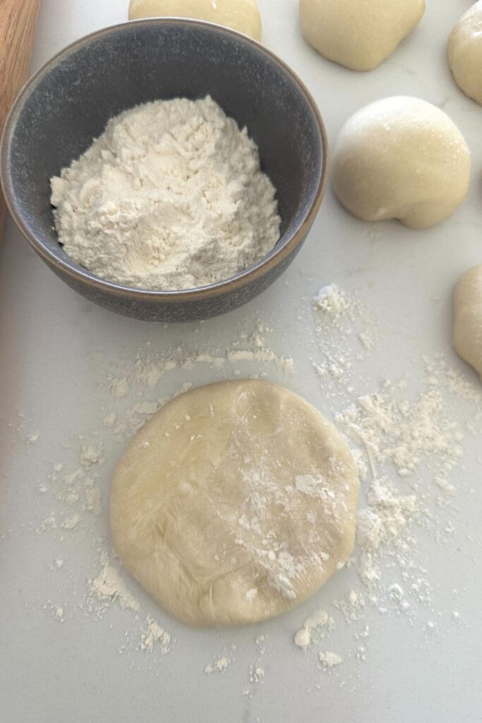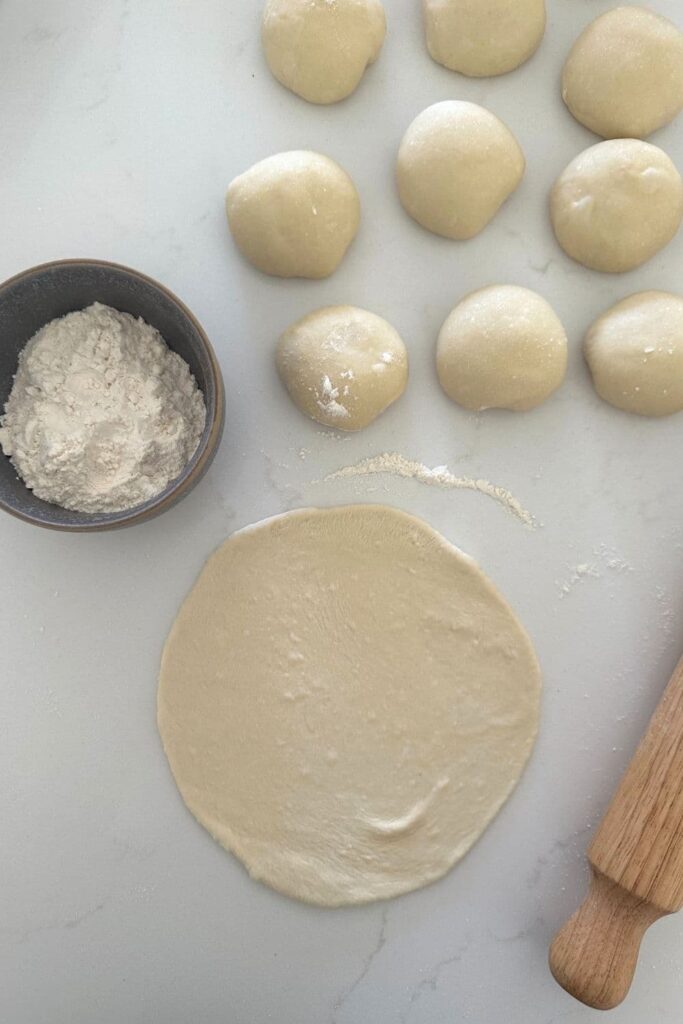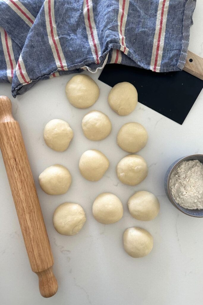 Once the dough is ready, separate the dough into smaller balls so they are ready to be rolled out. I find around 80g to be the perfect size dough ball.