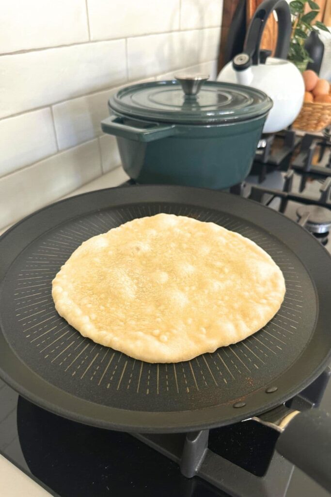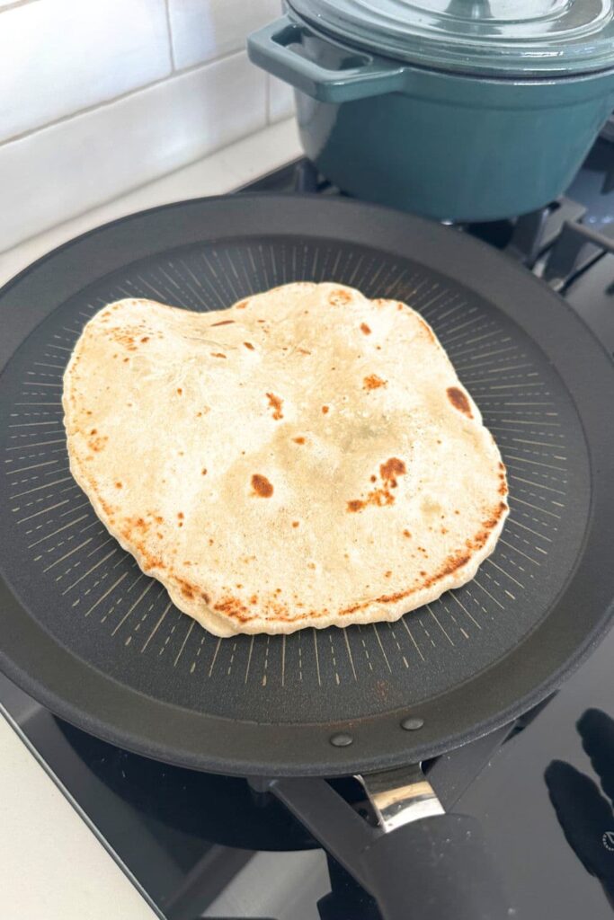 These sourdough tortillas need a hot, fast cook (but they don't need a lid so a flat pan is perfect).