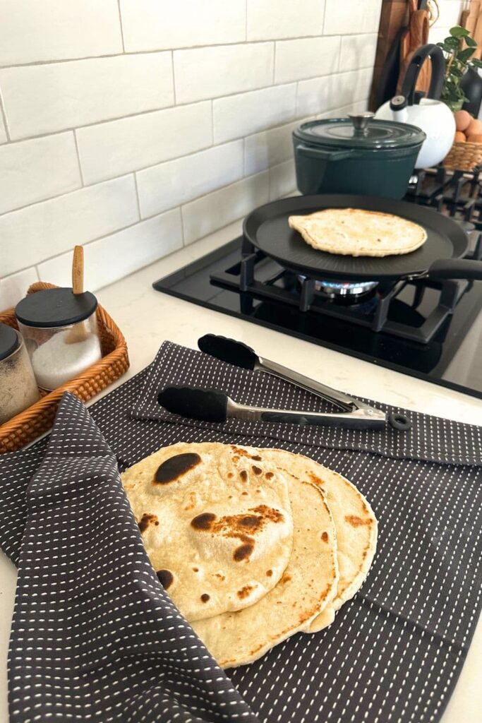 - If you aren't eating them straight away, keep the tortillas stacked and wrapped in a dish towel to ensure they stay nice and soft and pliable.