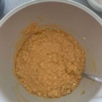 - Mix all of the wet ingredients together into a large bowl. Use a fork to whisk them together into a smooth batter (include the peanut butter).
