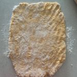 - Turn onto a floured surface and press out into a rough rectangle.