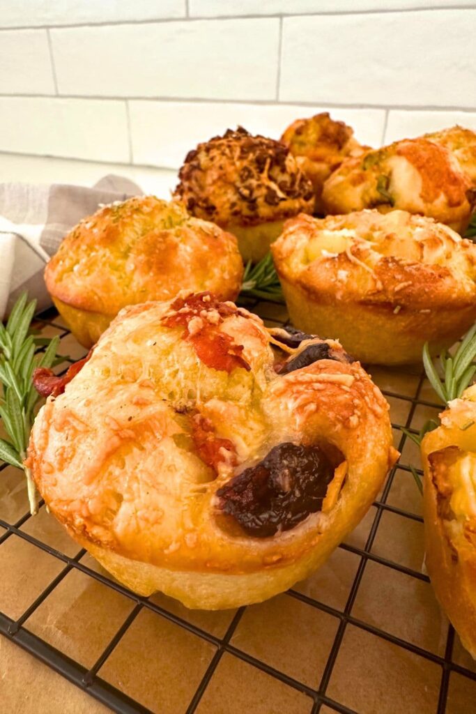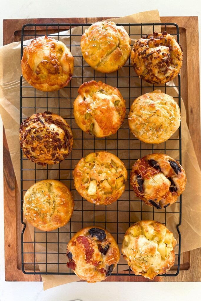 I love making a whole different array of flavor combinations when I make these sourdough focaccia muffins, especially if we are taking them to a gathering. People love trying new flavor combinations!