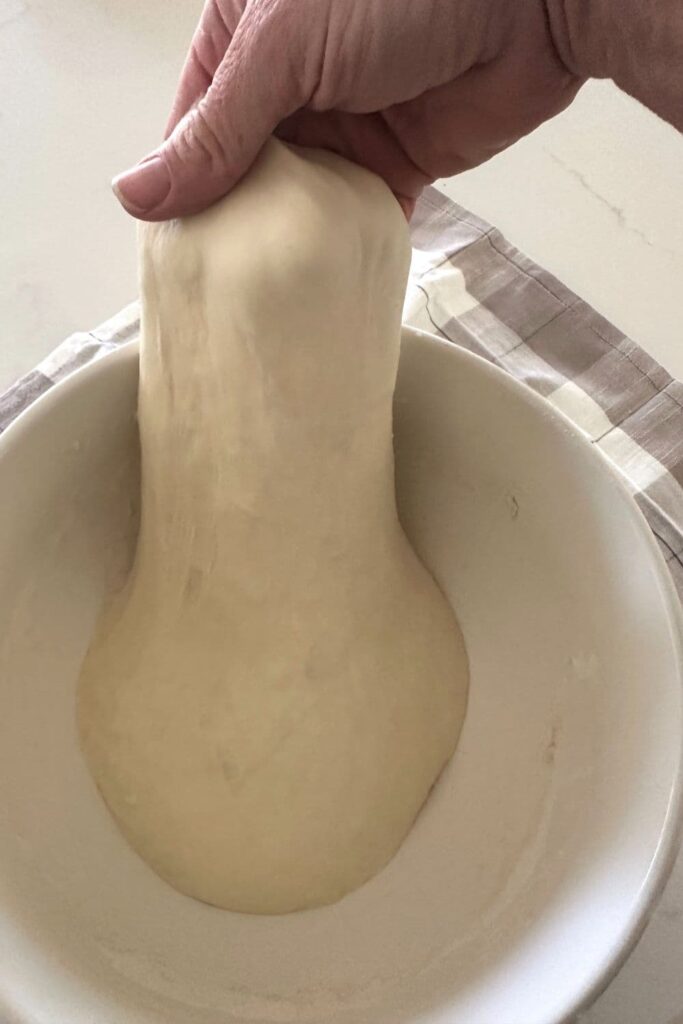 - Strengthening the DoughAfter the dough has been through autolyse you need to bring it together into a ball. Work your way around the bowl, grabbing the dough from the outside, stretching it up and over itself, into the centre. You should feel the dough strengthen as you do this. It doesn't have to be perfectly smooth or tight, just work around the bowl stretching and folding (around 10 - 15 times is perfect).
