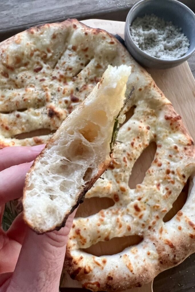 While is is often compared to Italian Focaccia, fougasse is different because unlike focaccia which is cooked in an oiled pan, Fougasse is baked on a hot stone (like a pizza or baking stone). This gives it a crispy crust and bubbly, soft interior. Focaccia has a different crust from being baked in oil.