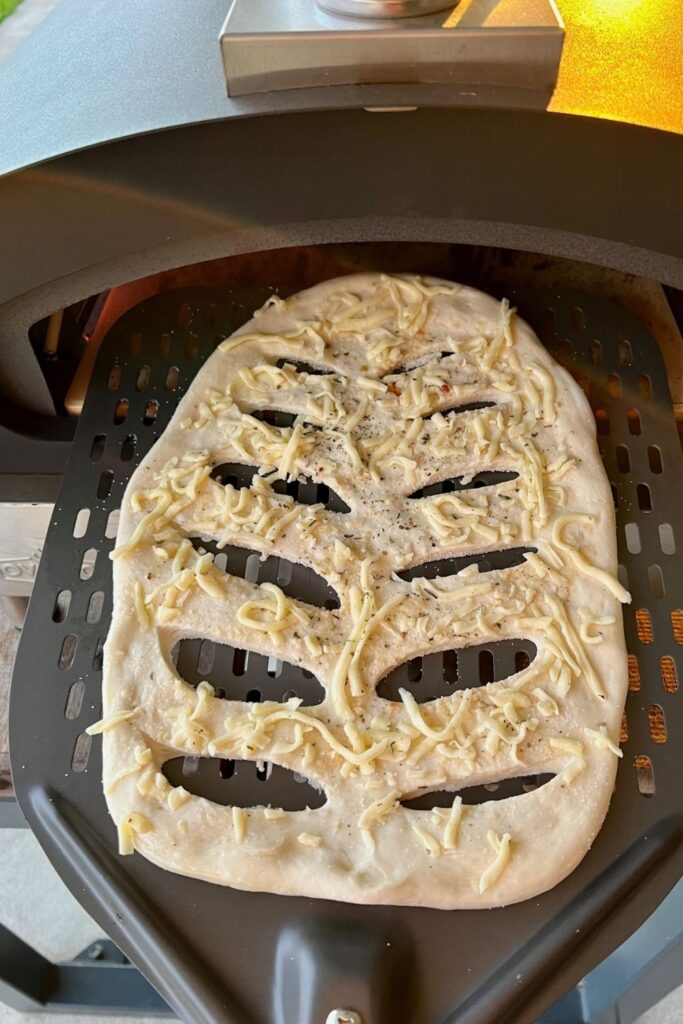 - If you want to add toppings like herbs or cheese, add these now and then place your fougasse into the hot oven for around 10 to 15 minutes or until they are crispy.