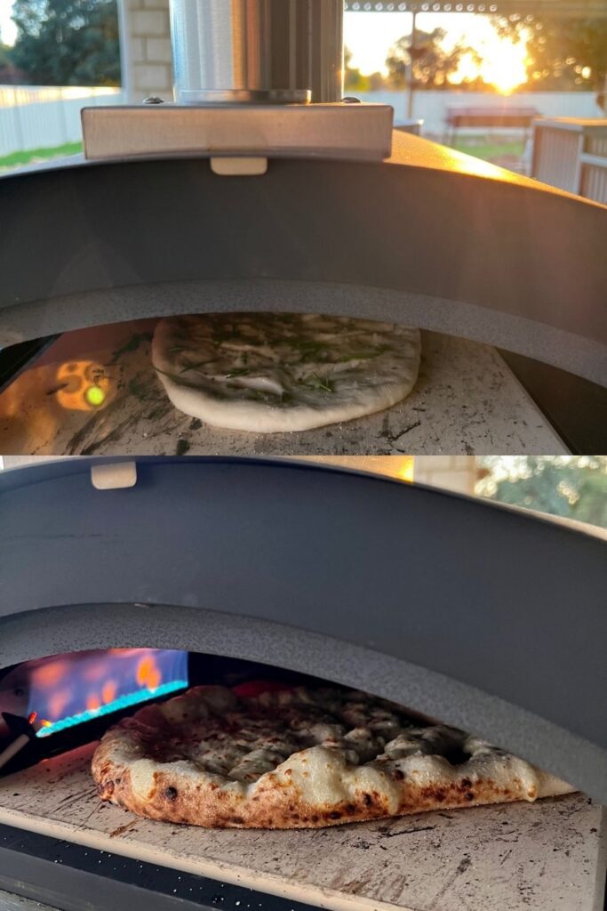 - Place your fougasse into the hot oven for around 10 to 15 minutes or until they are crispy. I choose to bake these fougasse in a gas fired pizza oven directly on the stone. I use a perforated pizza peel to transfer them from the wooden pizza peel to the stone.
