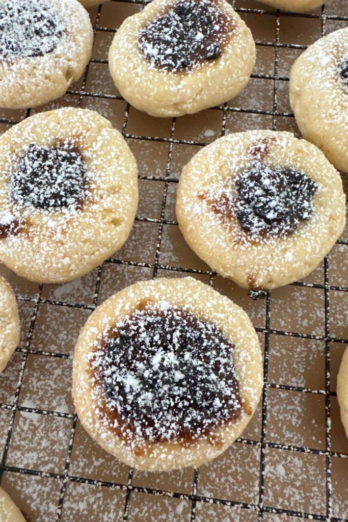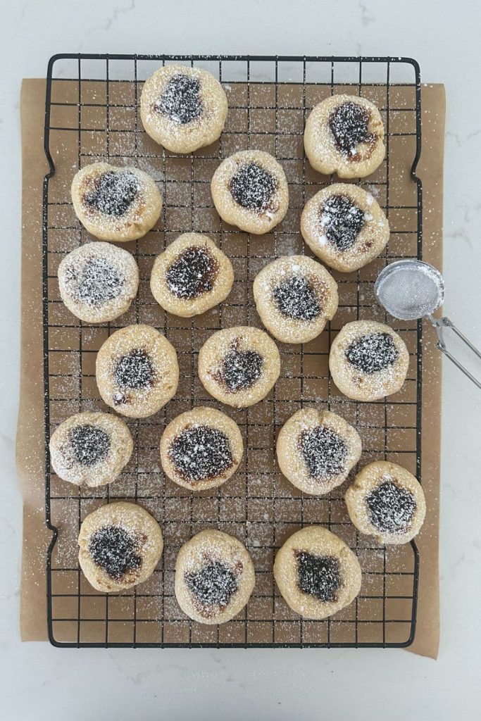 - Place the sourdough thumbprint cookies into the oven at 350F (180C) for around 15 to 18 minutes or until they are just golden and the fruit mince is bubbling.