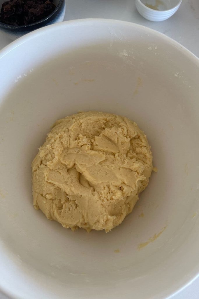 - Now, cover the dough with plastic wrap and place in the fridge for a minimum of 2 hours. You can leave it in the fridge for up to 48 hours.